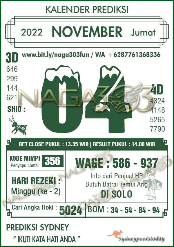 Prediksi Sydney Pools Jumat 04 November 2022 | Web Toto Naga303