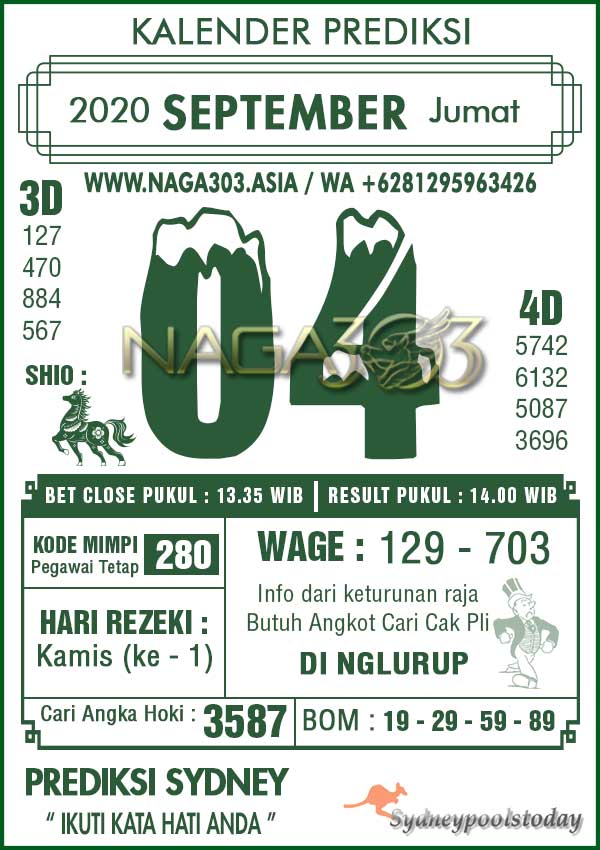 Prediksi Sydney Pools Jumat 04 September 2020 | Web Toto Naga303