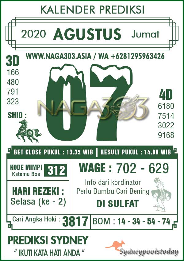 Prediksi Sydney Pools Jumat 07 Agustus 2020