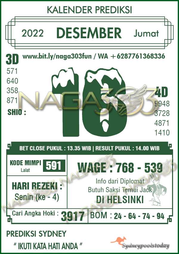 Prediksi Sydney Pools Jumat 16 Desember 2022