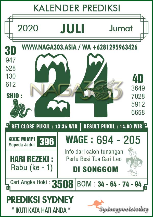 Prediksi Sydney Pools Jumat 24 Juli 2020 | Web Toto Naga303