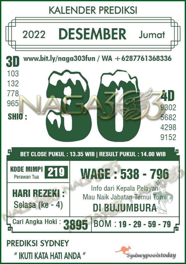 Prediksi Sydney Pools Jumat 30 Desember 2022