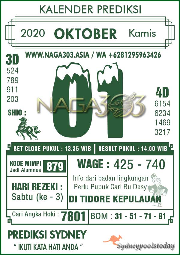Prediksi Sydney Pools Kamis 01 Oktober 2020 | Web Toto Naga303