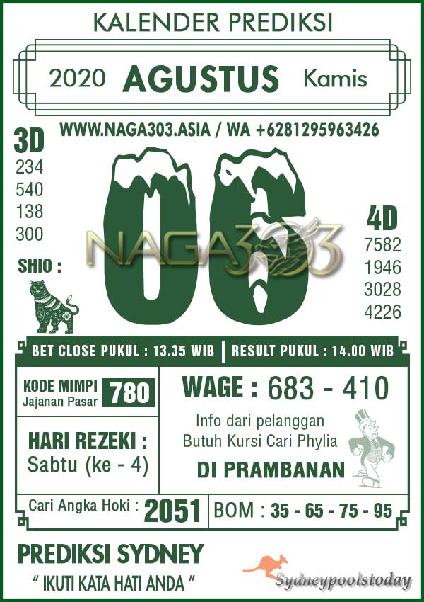 Prediksi Sydney Pools Kamis 06 Agustus 2020 | Web Toto Naga303