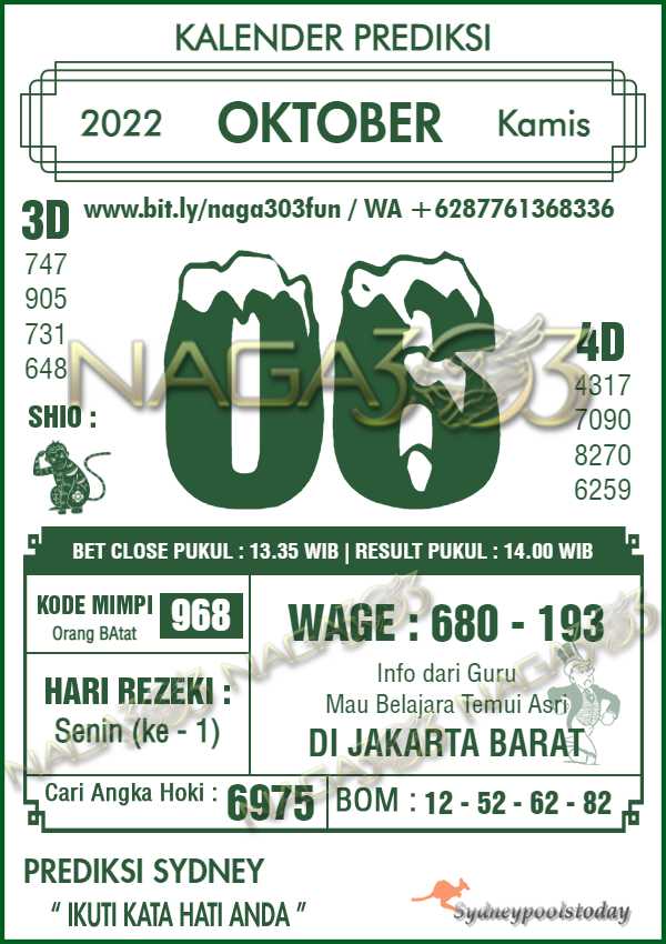 Prediksi Sydney Pools Kamis 06 Oktober 2022