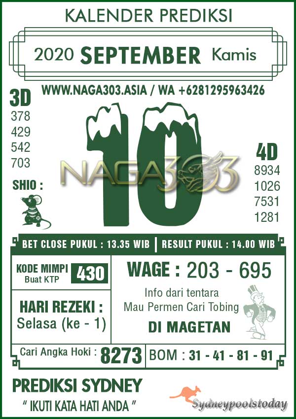 Prediksi Sydney Pools Kamis 10 September 2020
