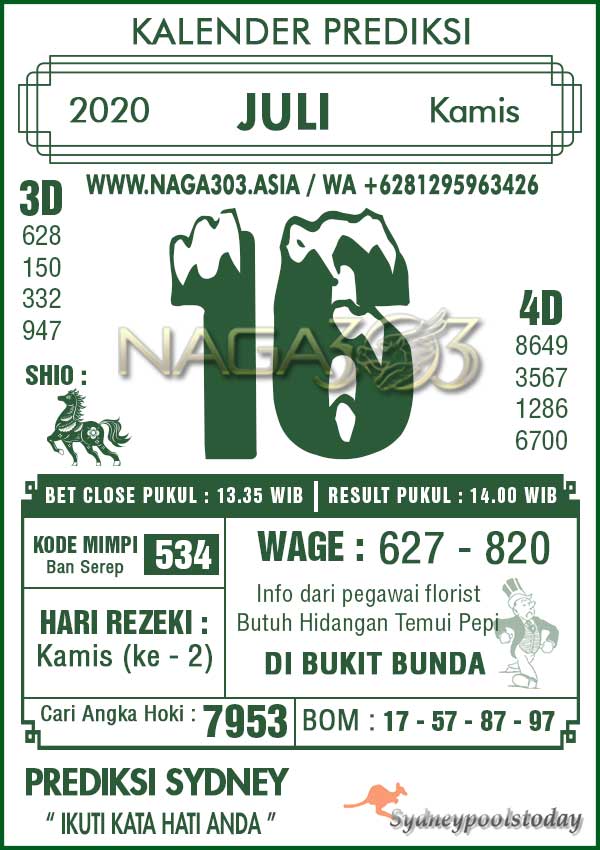 Prediksi Sydney Pools Kamis 16 Juli 2020