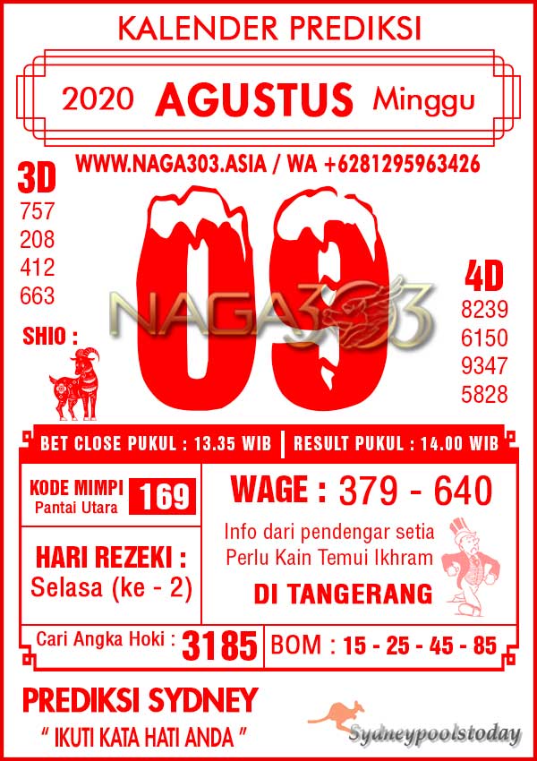 Prediksi Sydney Pools Minggu 09 Agustus 2020 | Web Toto Naga303
