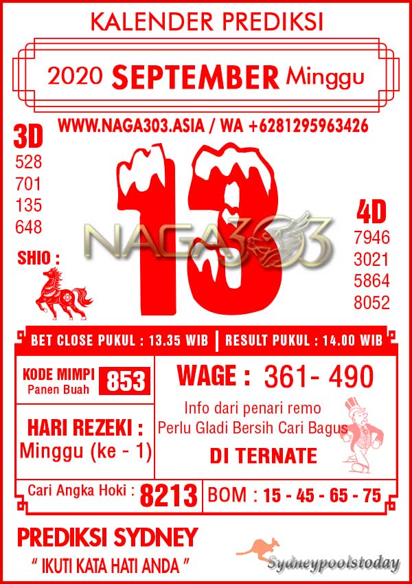 Prediksi Sydney Pools Minggu 13 September 2020 | Web Toto Naga303