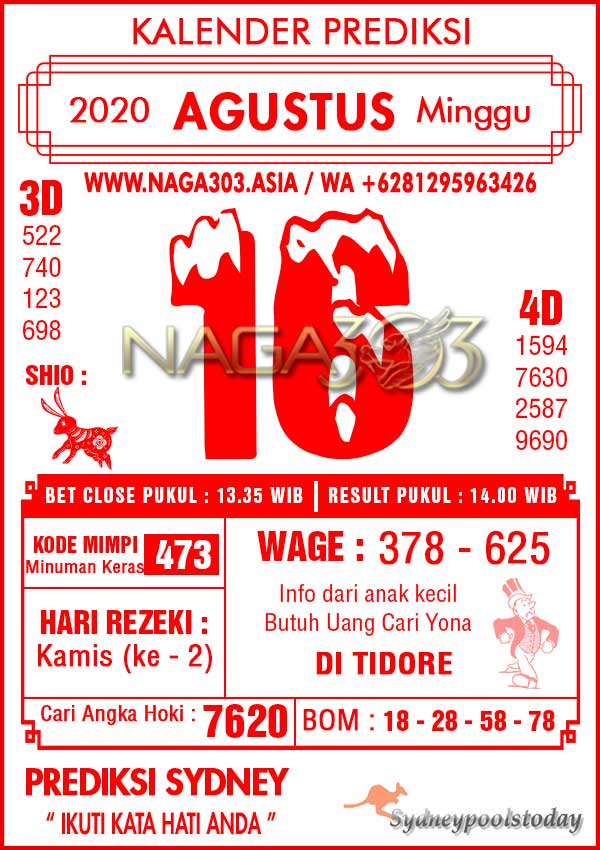 Prediksi Sydney Pools Minggu 16 Agustus 2020 | Web Toto Naga303