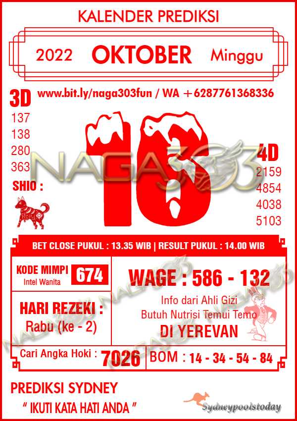Prediksi Sydney Pools Minggu 16 Oktober 2022 | Web Toto Naga303