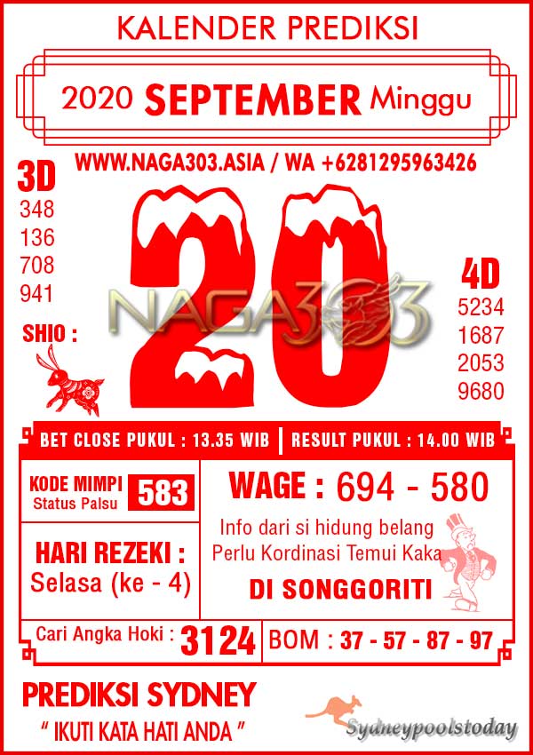 Prediksi Sydney Pools Minggu 20 September 2020 | Web Toto Naga303