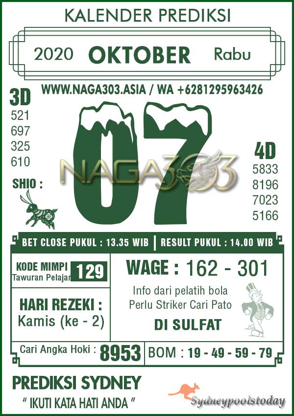 Prediksi Sydney Pools Rabu 07 Oktober 2020