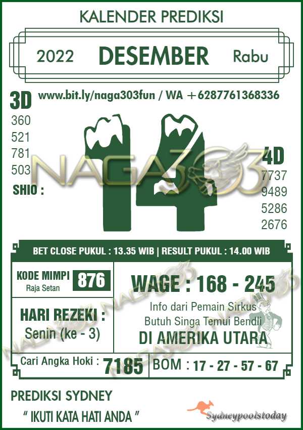 Prediksi Sydney Pools Rabu 14 Desember 2022