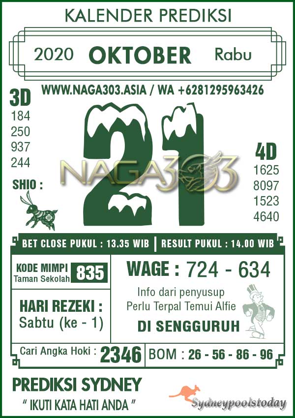Prediksi Sydney Pools Rabu 21 Oktober 2020
