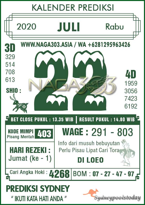 Prediksi Sydney Pools Rabu 22 Juli 2020 | Web Toto Naga303