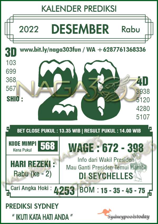 Prediksi Sydney Pools Rabu 28 Desember 2022