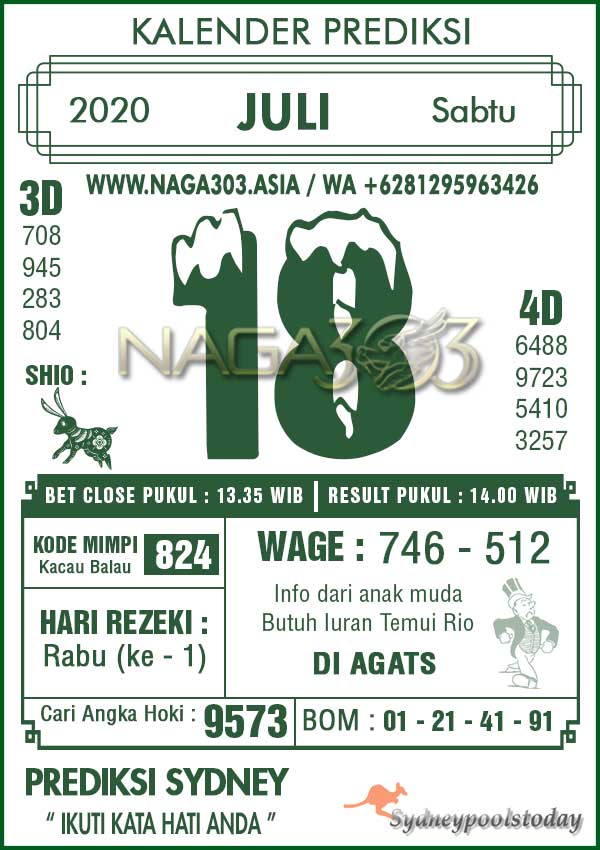 Prediksi Sydney Pools Sabtu 18 Juli 2020