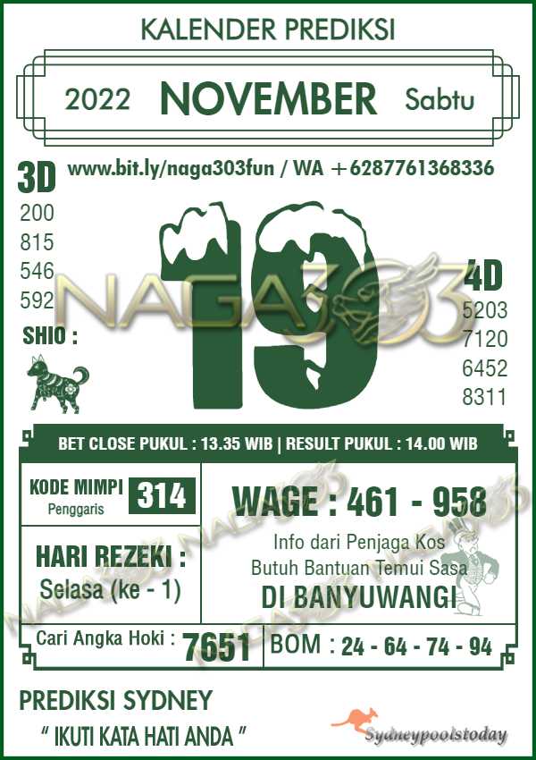 Prediksi Sydney Pools Sabtu 19 November 2022