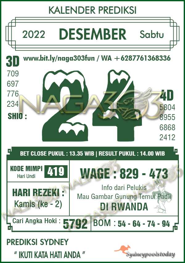Prediksi Sydney Pools Sabtu 24 Desember 2022