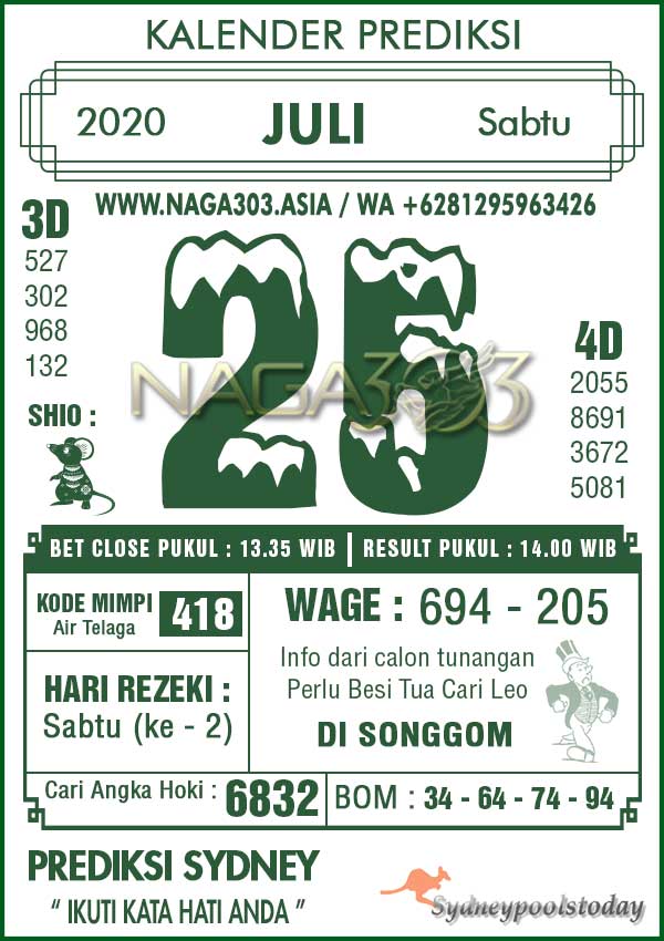 Prediksi Sydney Pools Sabtu 25 Juli 2020