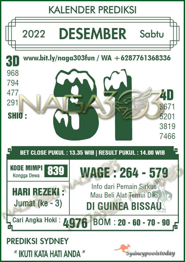 Prediksi Sydney Pools Sabtu 31 Desember 2022