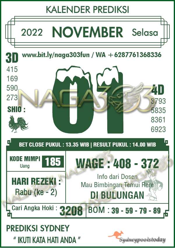 Prediksi Sydney Pools Selasa 01 November 2022 | Web Toto Naga303