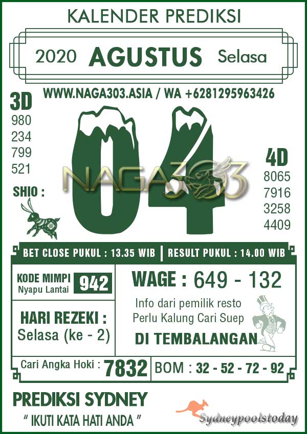 Prediksi Sydney Pools Selasa 04 Agustus 2020
