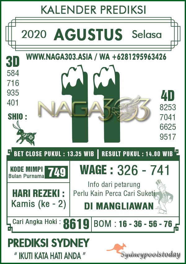 Prediksi Sydney Pools Selasa 11 Agustus 2020