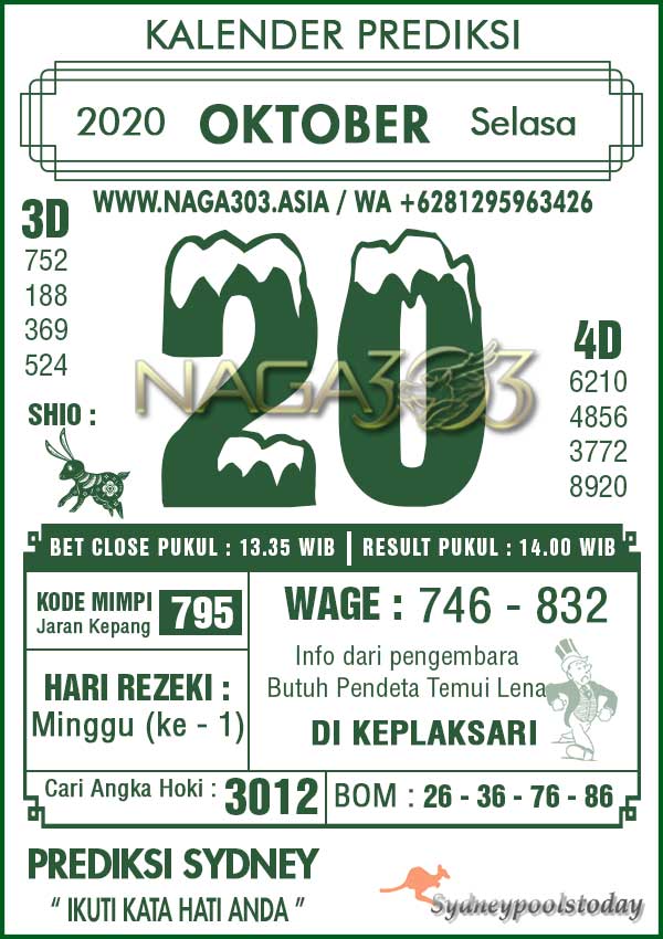 Prediksi Sydney Pools Selasa 20 Oktober 2020