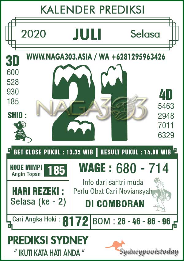 Prediksi Sydney Pools Selasa 21 Juli 2020