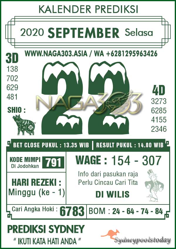 Prediksi Sydney Pools Selasa 22 September 2020