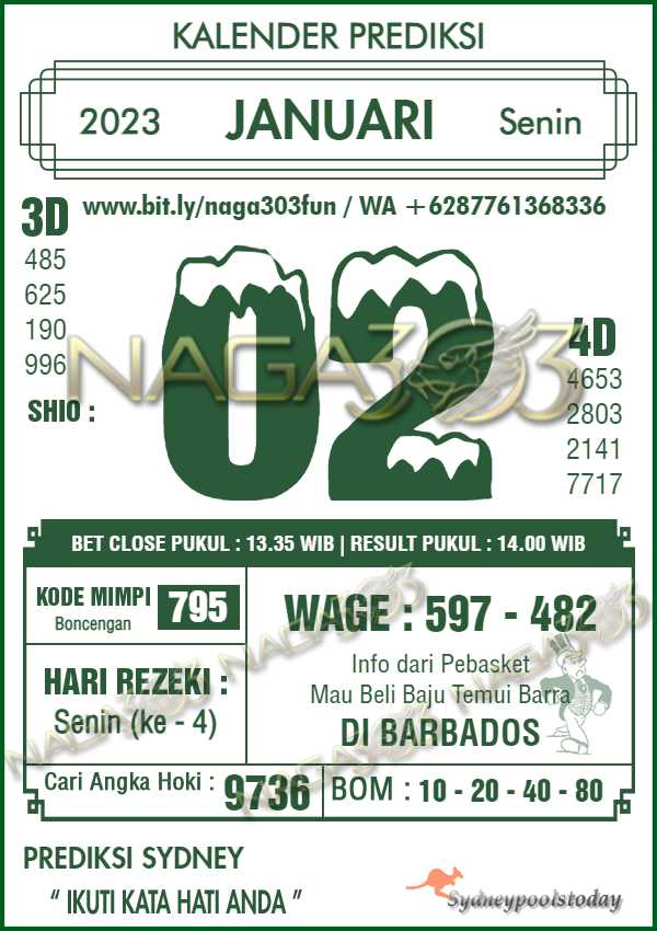 Prediksi Sydney Pools Senin 02 Januari 2023 | Web Toto Naga303