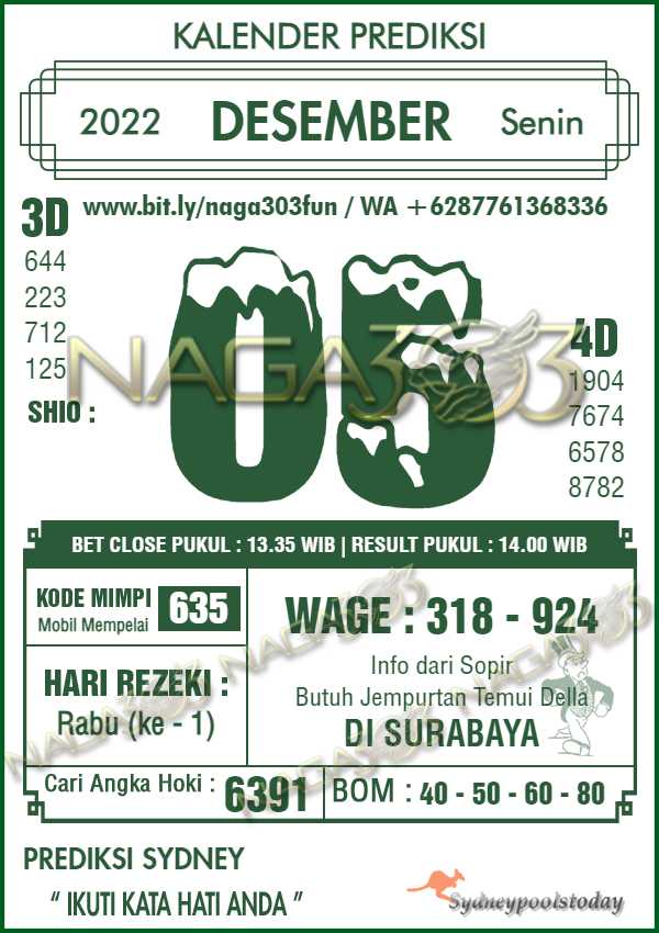 Prediksi Sydney Pools Senin 05 Desember 2022