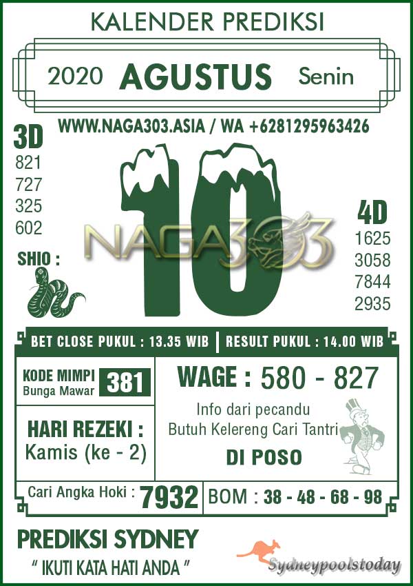 Prediksi Sydney Pools Senin 10 Agustus 2020