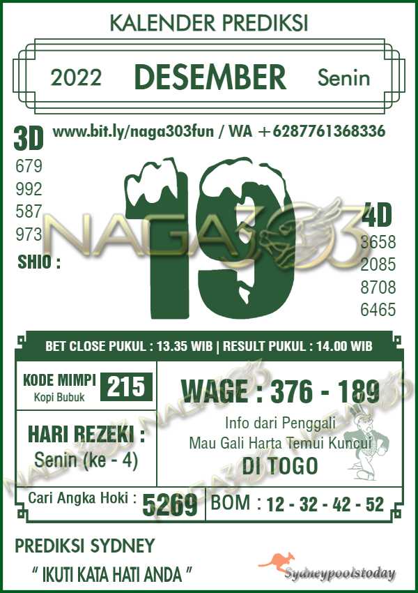 Prediksi Sydney Pools Senin 19 Desember 2022