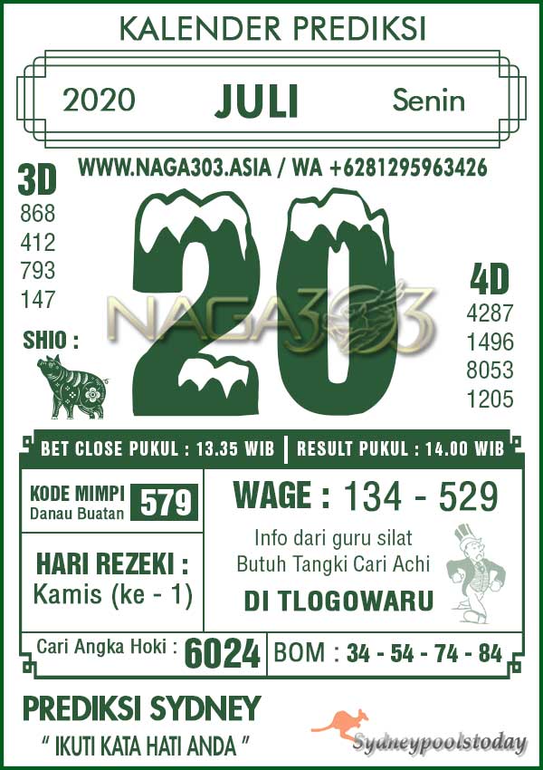 Prediksi Sydney Pools Senin 20 Juli 2020