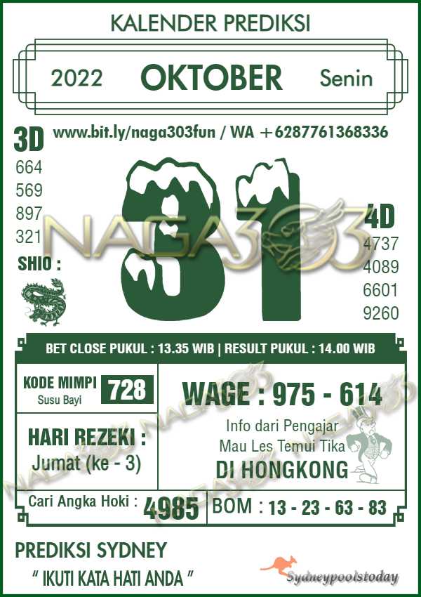 Prediksi Sydney Pools Senin 31 Oktober 2022