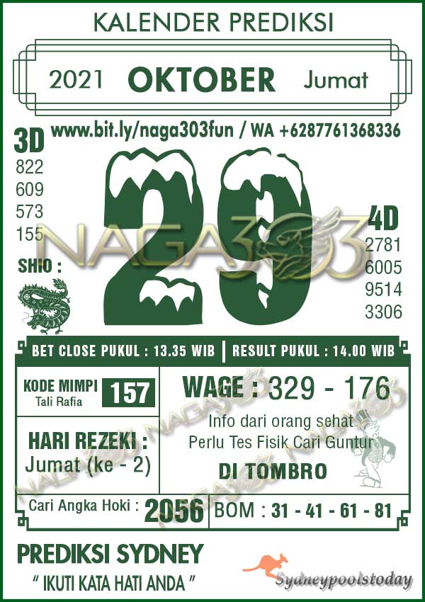 Prediksi SydneyPools Jumat 29 Oktober 2021