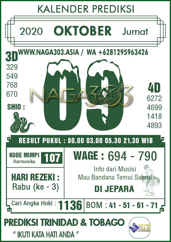 Prediksi Trinidad & Tobago Pools Jumat 09 Oktober 2020