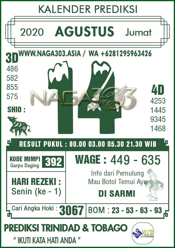 Agen Judi Online Terbesar & Terpercaya, Kami biasa memberikan info yaitu Prediksi TRINIDAD & TOBAGO POOLS, dimana prediksi ini telah kami racik terlebih