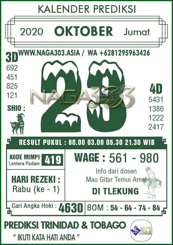 Agen Judi Online Terbesar & Terpercaya, Kami biasa memberikan info yaitu Prediksi TRINIDAD & TOBAGO POOLS, dimana prediksi ini telah kami racik terlebih