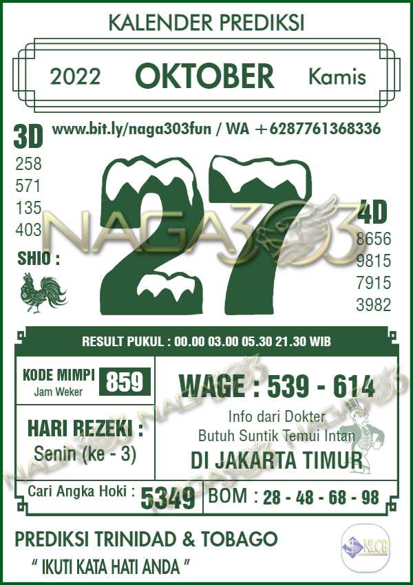 untuk informasi mengenai Prediksi TRINIDAD & TOBAGO POOLS, ini lah yang tadi kami bahas semoga bermanfaat prediksinya dan semoga anda beruntung. Salam Hokky…