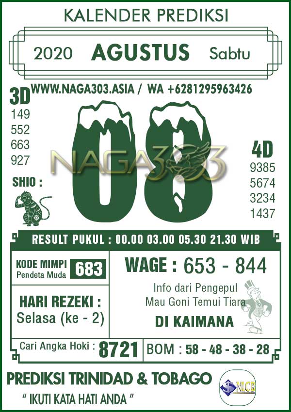 Prediksi Trinidad & Tobago Pools Sabtu 08 Agustus 2020 | Web Toto Naga303