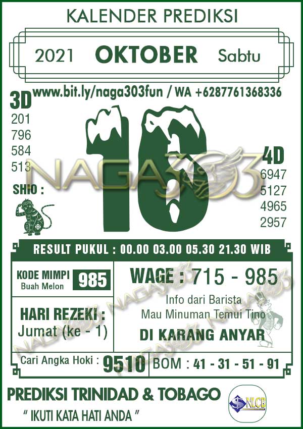 Agen Judi Online Terbesar & Terpercaya, Kami biasa memberikan info yaitu Prediksi TRINIDAD & TOBAGO POOLS, dimana prediksi ini telah kami racik terlebih