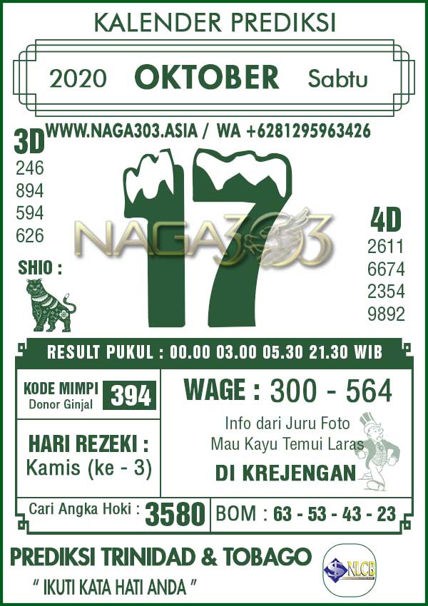 Prediksi Trinidad & Tobago Pools Sabtu 17 Oktober 2020 | Web Toto Naga303
