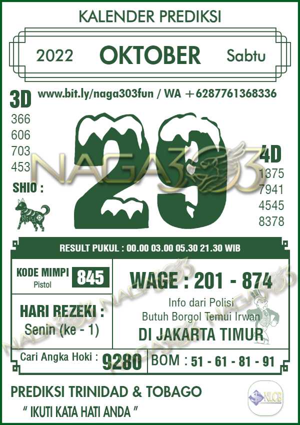 untuk informasi mengenai Prediksi TRINIDAD & TOBAGO POOLS, ini lah yang tadi kami bahas semoga bermanfaat prediksinya dan semoga anda beruntung. Salam Hokky…