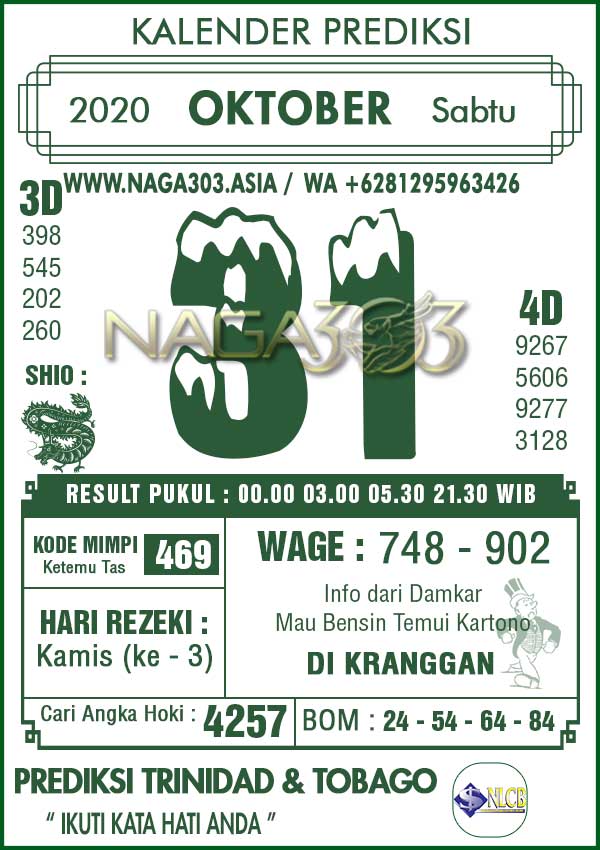 Agen Judi Online Terbesar & Terpercaya, Kami biasa memberikan info yaitu Prediksi TRINIDAD & TOBAGO POOLS, dimana prediksi ini telah kami racik terlebih