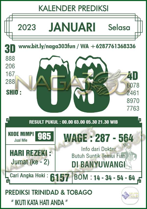 Prediksi Trinidad & Tobago Pools Selasa 03 Januari 2023 | Web Toto Naga303