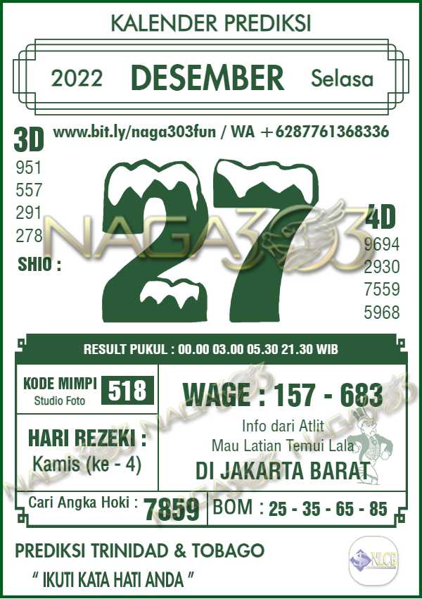 Prediksi Trinidad & Tobago Pools Selasa 27 Desember 2022